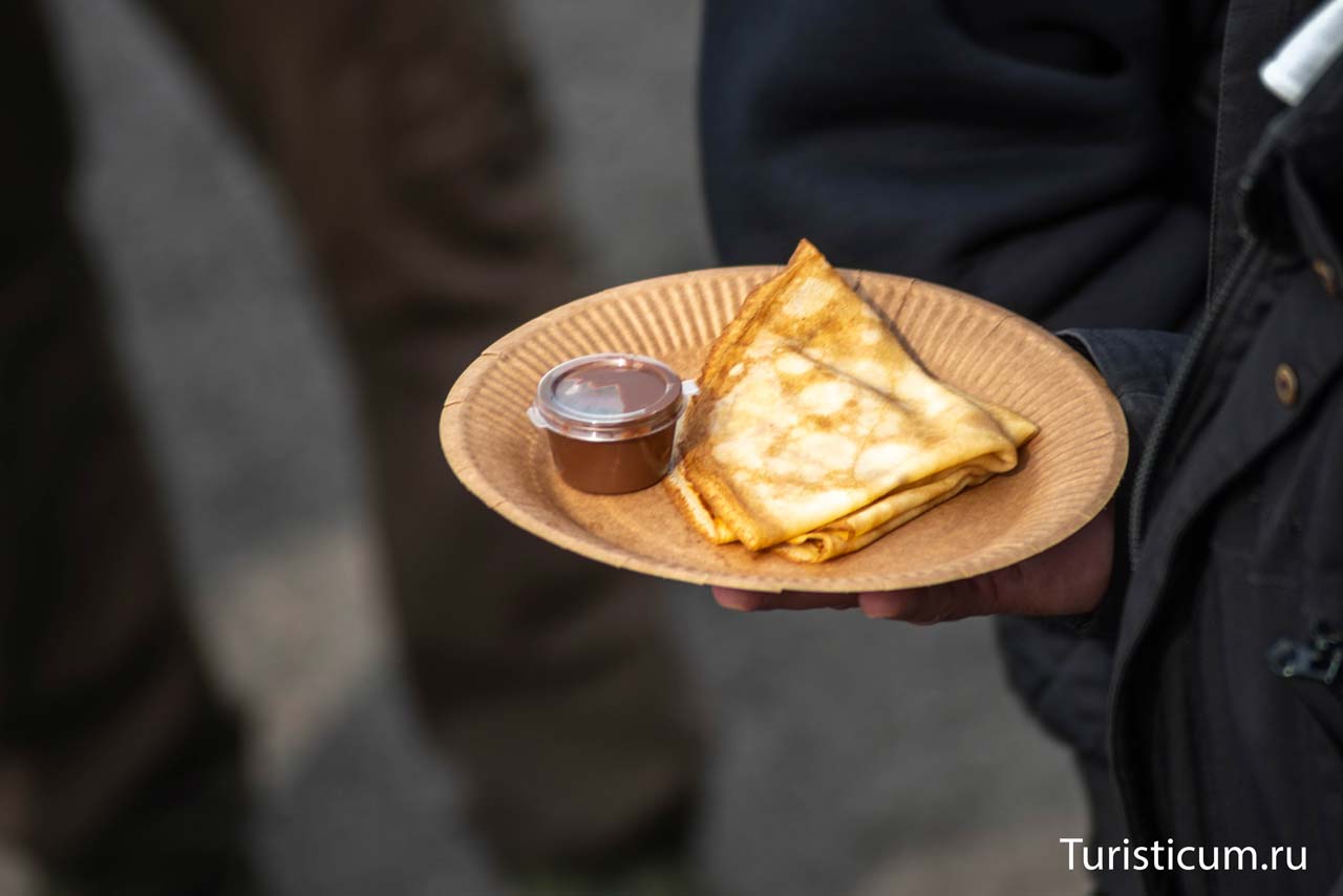 В последний день Масленичной недели, общественные пространства объединили жителей и гостей края на проводах зимы и встрече весны. Длинные шланги очередей можно было наблюдать во всех точках, где торговали блинами. За чем стояли? За блинами, разумеется! Где-то их пекли и раздавали бесплатно (редкость!), но чаще шла продажа. Проходя мимо одной из очередей, был подслушан разговор семейной пары: муж пытался узнать у жены себестоимость домашнего блина, наверное, чтобы оценить рациональность… По шкале радости это стремилось к нулю.