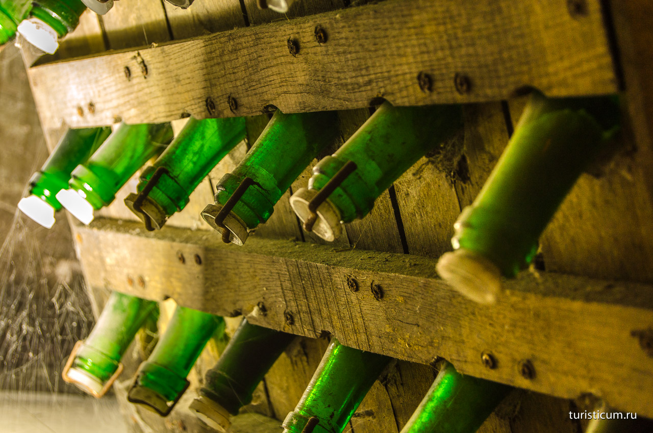 Оснащение тоже впечатляет — вакуумные пневмотические прессы, емкости с температурным контролем и фильтрами, линии стерильного розлива, а главное — подземные хранилища. В полумраке подвала многочисленные казы, ячейки для горизонтального хранения вина в бутылках, производят завораживающее впечатление на энотуриста, а для сотрудников винодельни это обычные рабочие будни среди декалитров игристой и тихой продукции.