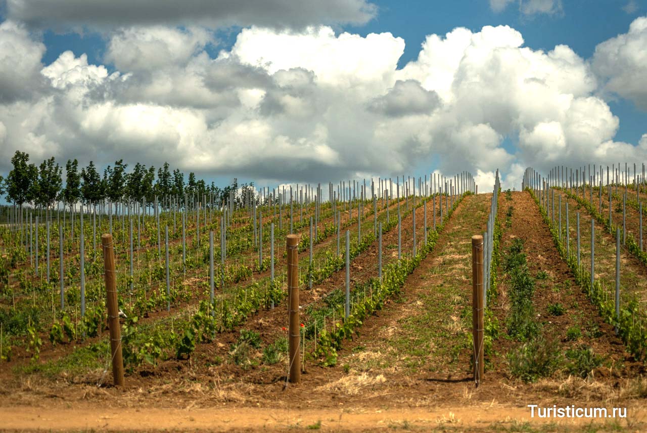 Виноградники Шато де Талю раскинулись в южном терруаре — на двух площадках: в районе Толстого мыса и в посёлке Виноградный. География звучит почти как маршрут для романтического побега от городской суеты: чуть ближе к морю, чуть дальше в сторону солнца — и вот уже лоза растёт там, где ей действительно комфортно. Всего у винодельни 183 гектара плодоносящих виноградников — масштабы такие, что при желании можно заблудиться не хуже, чем в торговом центре, только вместо витрин здесь аккуратные зелёные ряды.