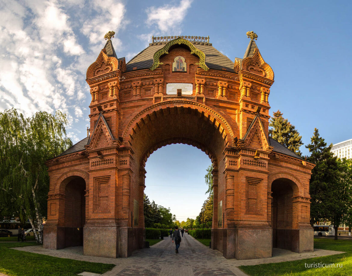 Александровский бульвар, давно ставший достопримечательностью города, с недавних пор приобрел статус объекта культурного наследия регионального значения и, соответственно, включен в единый государственный реестр памятников истории и культуры. Улица Красная и ее достопримечательности — прогулка по Краснодару Улица Красная и ее достопримечательности — прогулка по Краснодару История бульвара на улице Красной берет свое начало в конце XIX века. Его формирование продолжалось до 50-х годов XX века. За это время бульвар неоднократно менял название: то он назывался Ростовским, то Шевченковским. В 2013 году Краснодарская городская дума присвоила бульвару новое имя — Александровский. На сегодняшний день протяженность главной аллеи города составляет около трех километров — от Театральной площади до кинотеатра «Аврора». Улица Красная и ее достопримечательности — прогулка по Краснодару Улица Красная и ее достопримечательности — прогулка по Краснодару Улица Красная и ее достопримечательности — прогулка по Краснодару На бульваре есть интересные скульптурные композиции, как памятник «Гость» — совершенно очаровательный молодой человек на чемодане с яблоком в руках или памятник «Студенты» — замечательная скульптурная композиция киногероев Шурика и Лиды из знаменитой комедии Леонида Гайдая «Операция «Ы» и другие приключения Шурика». Улица Красная и ее достопримечательности — прогулка по Краснодару Улица Красная и ее достопримечательности — прогулка по Краснодару Главной достопримечательностью бульвара является Александровская Триумфальная арка и памятник Святой Великомучинице Екатерине. Первоначально Триумфальная арка, а точнее царские ворота, были построены в 1888 году в честь приезда в город императора Александра III с семьей. Это была архитектурная композиция в лучших традициях древнемосковского стиля, с центральным пролетом для проезда экипажей и двумя боковыми для пешеходов. Исторический памятник не уцелел и был разрушен в 1928 году. К сожалению не сохранилось даже чертежей, потому новая арка была спроектирована на основе сведений, собранных по крупицам: анализ структуры похожих триумфальных арок в России, фотографий, свидетельств и археологических находок. Таким образом новая Триумфальная арка появилась в Краснодаре в 2009 году. Улица Красная и ее достопримечательности — прогулка по Краснодару Улица Красная и ее достопримечательности — прогулка по Краснодару Улица Красная и ее достопримечательности — прогулка по Краснодару